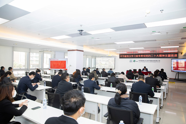刘家强强调,学习宣传贯彻党的二十大精神,根本的出发点和落脚点在于指导实践、推动工作,要坚持学以致用,将学习成效转化为推动公司高质量发展的具体举措。一是以高质量党建引领高质量发展,实现党建与生产经营融合发展,助力公司经营发展和效益提升。二是主动服务国家生态文明建设战略部署,深入分析国家宏观政策、行业发展趋势,主动出击寻找优质项目,不断提升服务能力。三是以高质量发展为指引打造扭亏为盈的典范,坚持“以增量解决存量问题”,积极探索混合所有制企业运营管理模式,在抢抓市场、机构改革、降本增效、清欠回款等方面持续用力。四是着力打造高素质干部和人才队伍,为推动企业发展提供坚实保障。五是深化推进从严治党治企,以全面从严治党引领保障公司高质量发展。