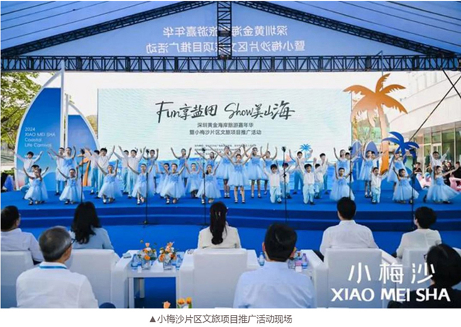 4月30日,由深圳市文化广电旅游体育局、深圳市盐田区人民政府主办,深圳市盐田区文化广电旅游体育局承办,深圳市特发小梅沙投资发展有限公司协办的深圳黄金海岸旅游嘉年华暨小梅沙片区文旅项目推广活动在小梅沙度假村启动。