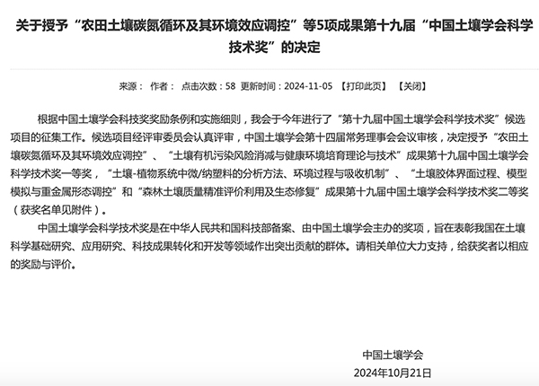 喜报|304永利集团一项目获中国土壤学会科学技术奖二等奖