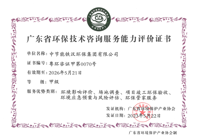 日前,304永利集团所属铁汉环保通过了广东省环境保护产业协会审核,顺利取得《广东省环保技术咨询服务能力评价证书》,成为2023年第一批广东省环保技术咨询服务能力评价甲级证书单位。