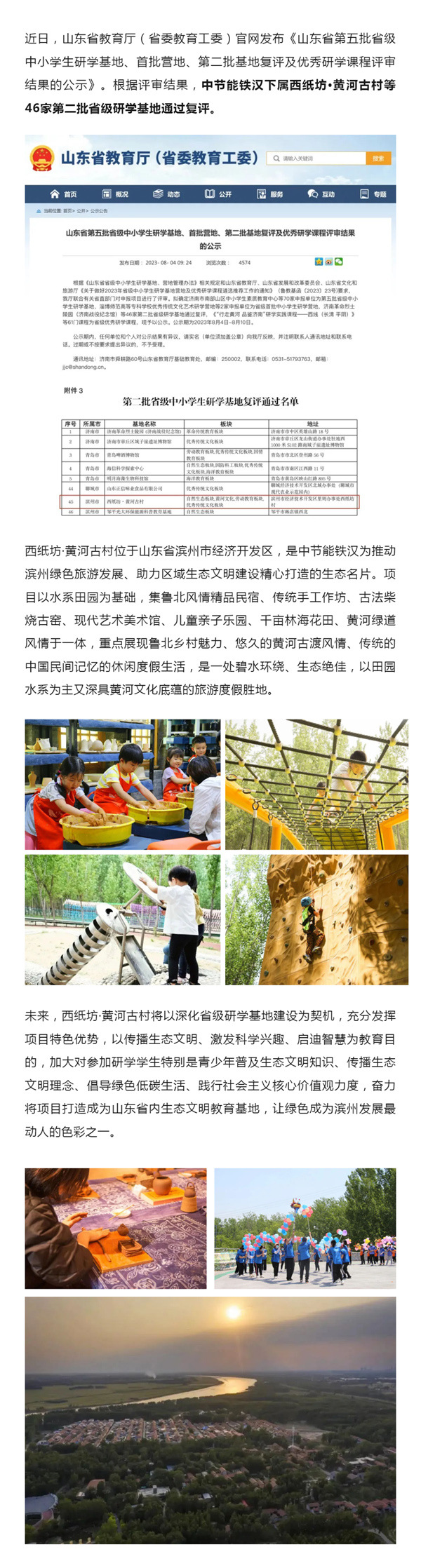 西纸坊·黄河古村通过山东省第二批省级中小学生研学基地复评