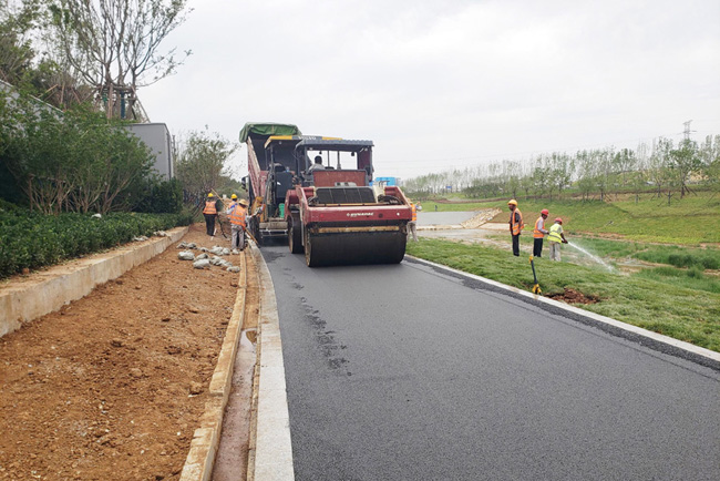 在烟台万华项目建设现场,满载土石方的工程车来回穿梭,铲土机、挖掘机等机械设备全速运转。工人们忙碌地开展桥面清理、人行道铺装等作业。据了解,目前绿化地被、铺装进入收尾阶段,预计7月底完成全部施工任务。同时,8月份,项目部对预验收提出的问题进行逐条销项整改,申请验收,确保项目如期如质验收完成。