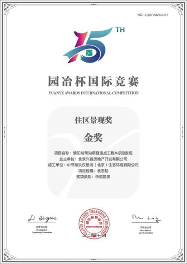 近日,第十五届园冶杯国际竞赛评审结果出炉,304永利集团所属铁汉星河承建的朝阳前苇沟项目重点工程A标段景观项目(中建璞园示范区)获得住区景观奖示范区类金奖。